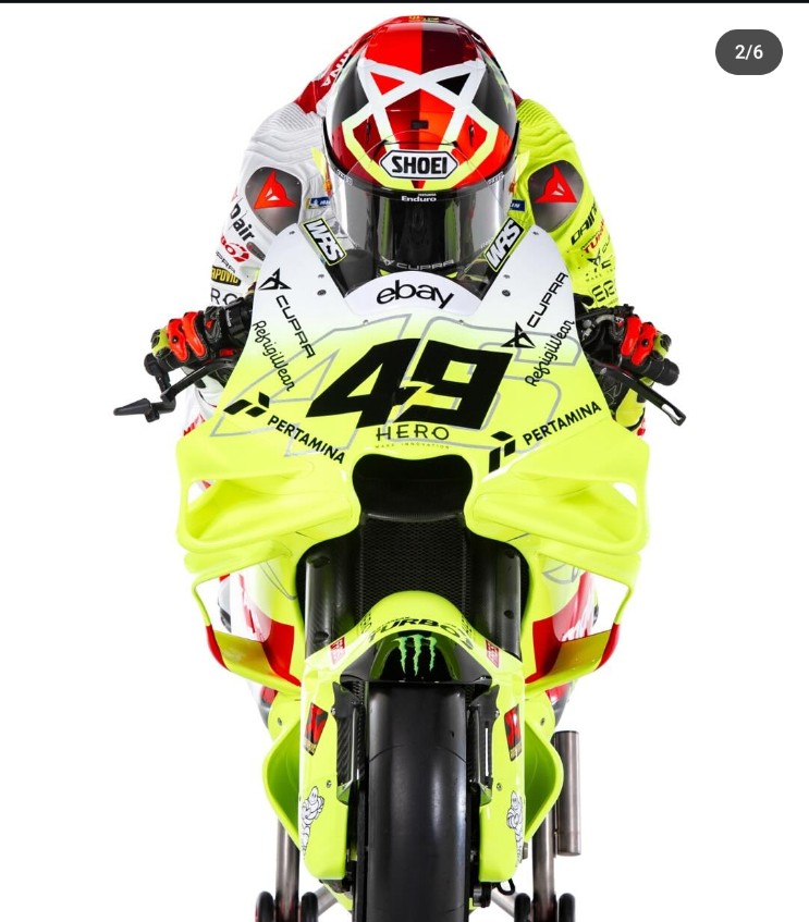 Masing-masing terlihat di sisi kanan dan kiri, sementara angka 49 dan 21 milik pembalap disandingkan dengan angka ikonik 46 di bagian tengah.
