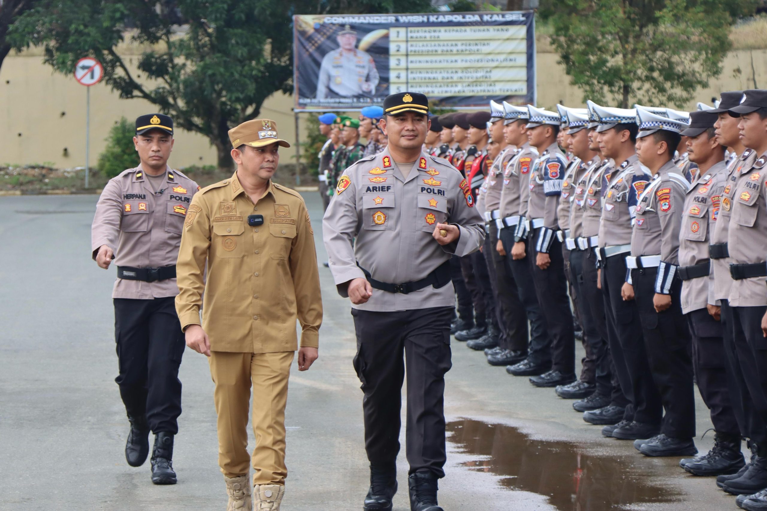 NEWSTUNTAS.COM – Bupati Tanah Bumbu, Andi Rudi Latif ditemani Kapolres Tanah Bumbu AKBP Arief Prasetya periksa pasukan dan armada untuk pelaksanaan Operasi Ketupat Intan 2025 di Halaman Mapolres Tanah Bumbu, Kamis (20/3/2025).