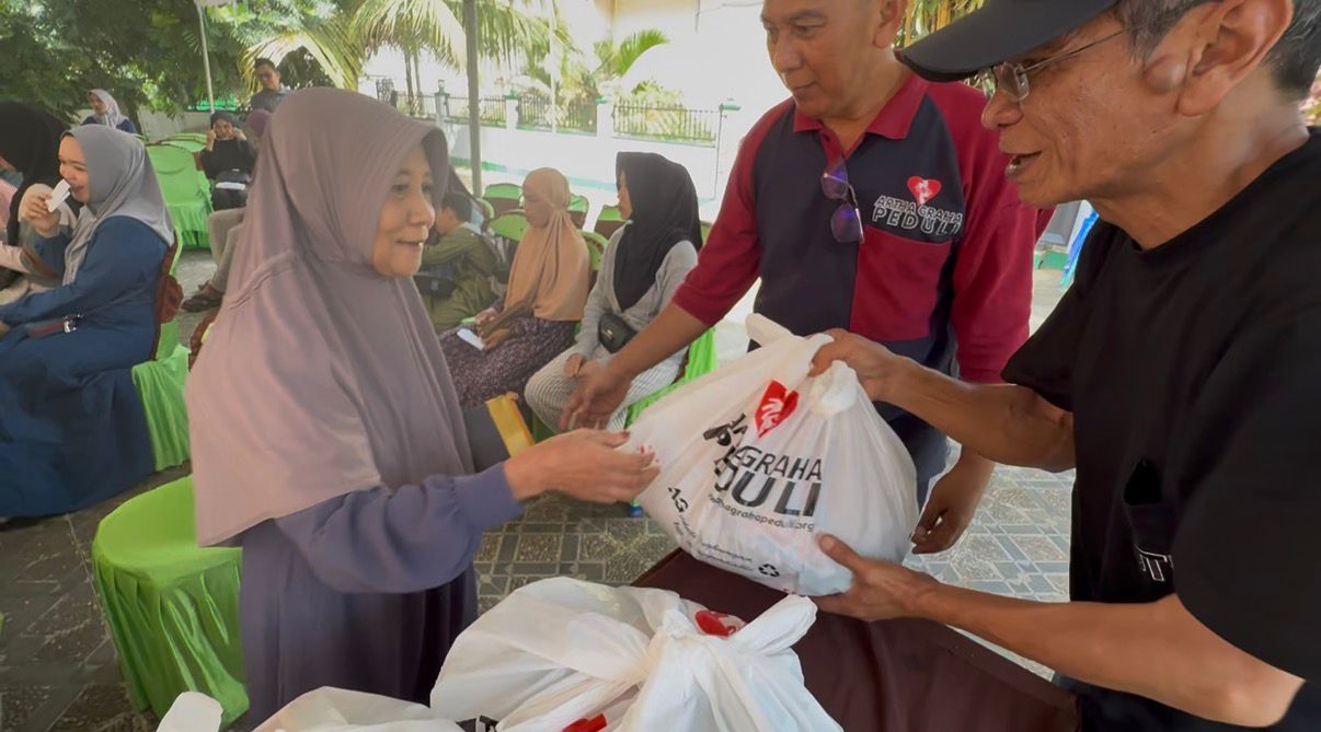 Andi Fitriani, salah satu penerima manfaat, tak bisa menyembunyikan rasa syukurnya setelah mendapatkan paket bahan pokok esensial.