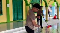 Jelang Hari Raya Idul Fitri 2025, Anggota Samapta Polres Tanah Bumbu Bersihkan Masjid
